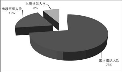 2013年度全国旅行社国内旅游组织12855.72万人次、40842.95万人天,接待14519.50万人次、33829.29万人天,分别同比减少10.53%、5.94%、10.94%和11.92%。