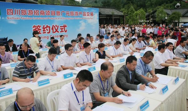 四川省旅游招商项目、广元旅游产品交易集中签约仪式也在本次文旅节开幕式上同时举行。四川省旅游局、成都市、广元市、攀枝花市、广安市、宜宾市、眉山市、资阳市等市州与投资商和战略合作伙伴共签署34个旅游招商项目,签约金额达到864.75亿元。